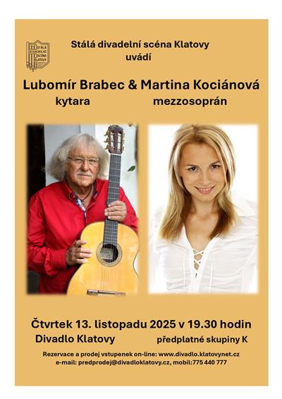 | MARTINA KOCIÁNOVÁ a LUBOMÍR BRABEC předplatné skupiny K, volné vstupenky v prodeji | ||