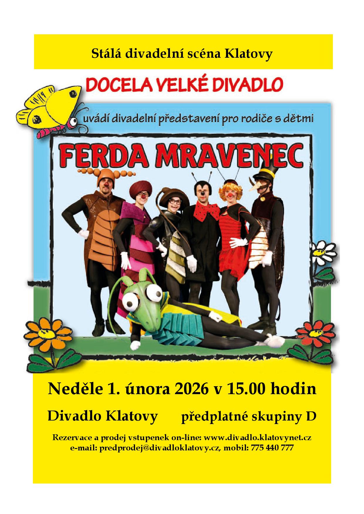 | FERDA MRAVENEC předplatné skupiny D, volné vstupenky v prodeji | ||