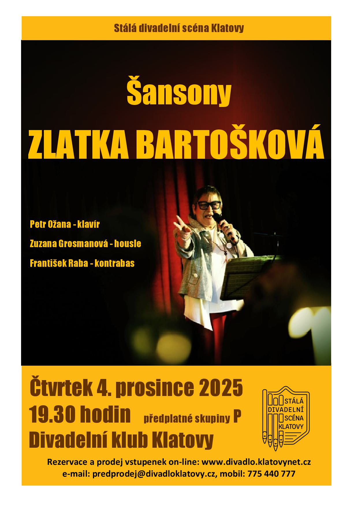 | ŠANSONY - Zlatka Bartošková předplatné skupiny P, volné vstupenky v prodeji | ||