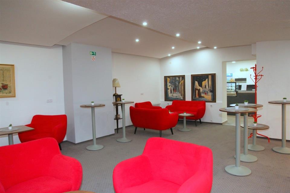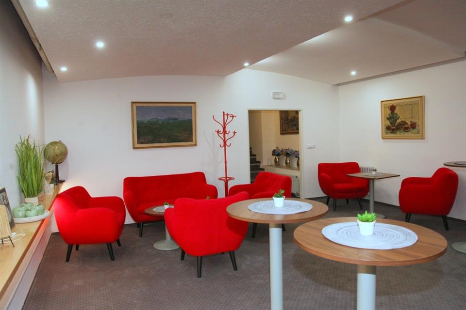 Divadelní kavárna nabízí výbornou kávu, velký výběr nápojů, čerstvé chlebíčky a zákusky z hotelu Ennius.